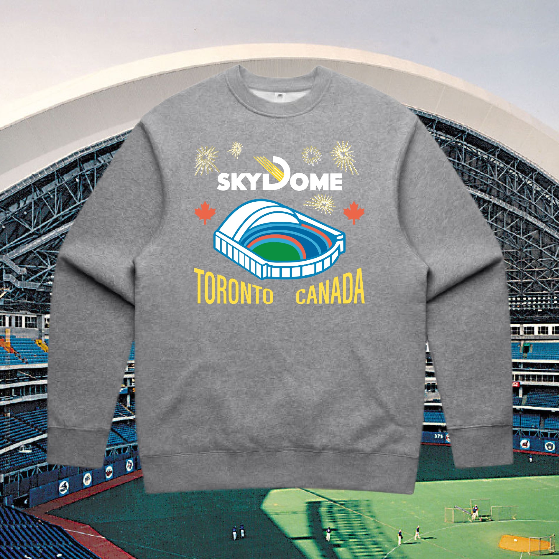 A love letter to $2 Jays tickets, summer evenings with the dome open, and Carlos Delgado. This retro-inspired sweater brings back the SkyDome in all its pre-Rogers Centre glory.